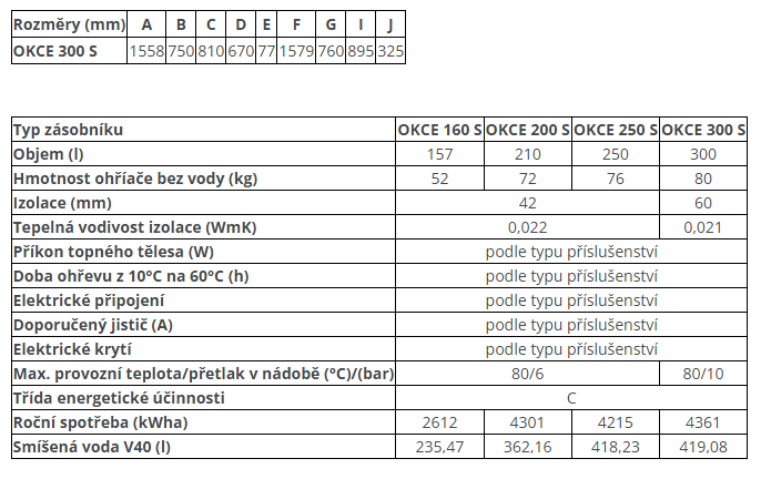 - Ohřívač 300 l má 60 mm tvrdé polyuretanové izolace s plastovým pláštěm