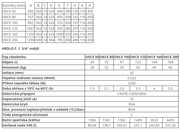 - Dostupný v objemech 50, 80, 100, 125, 160 a 200 l