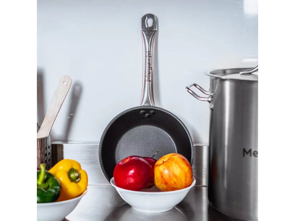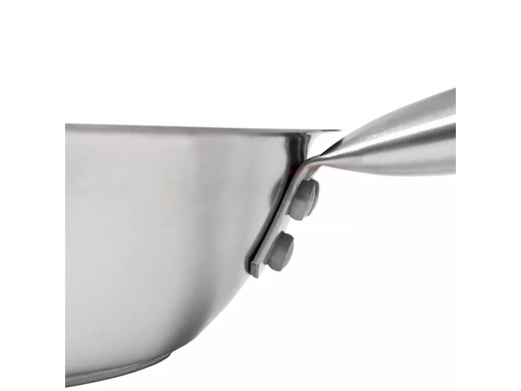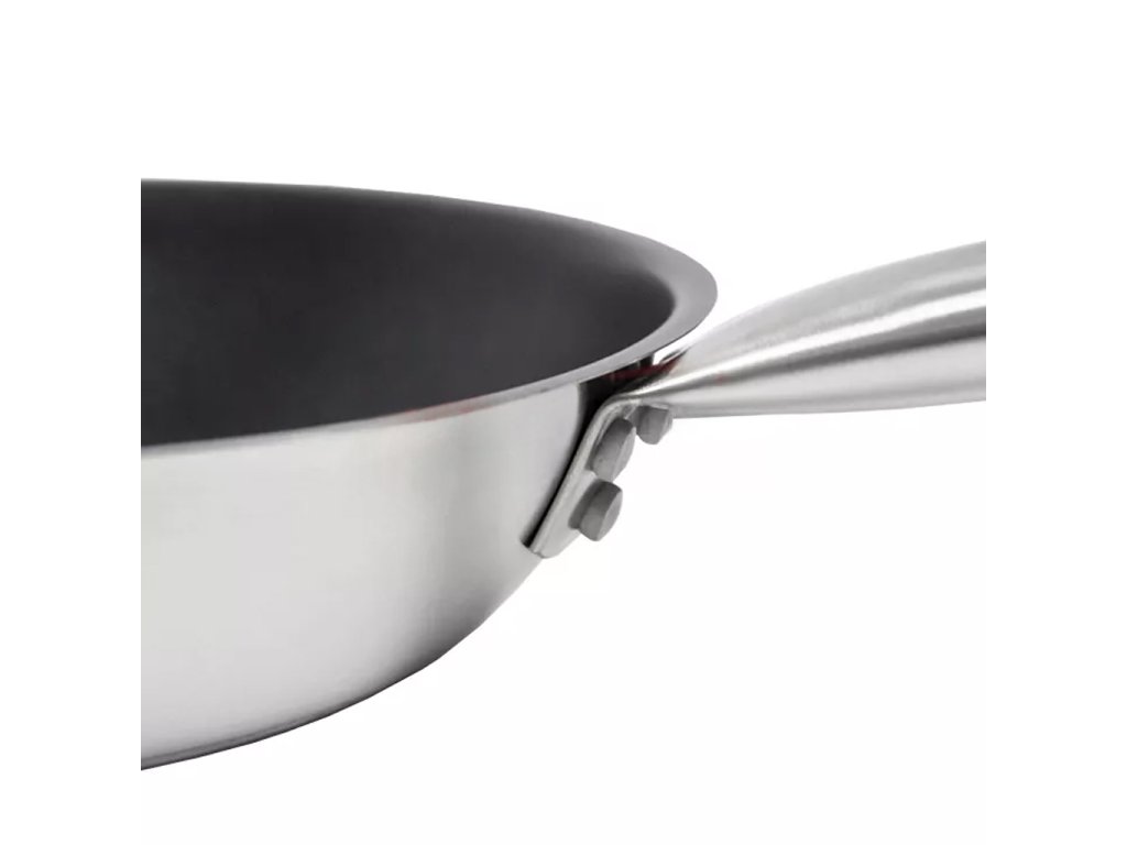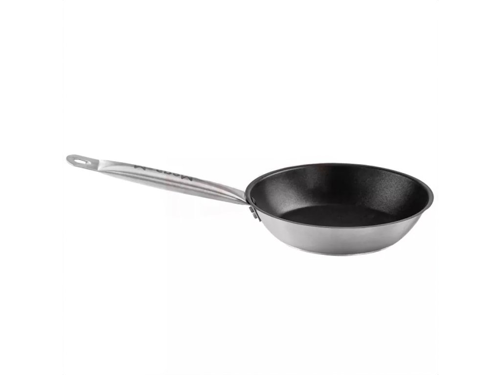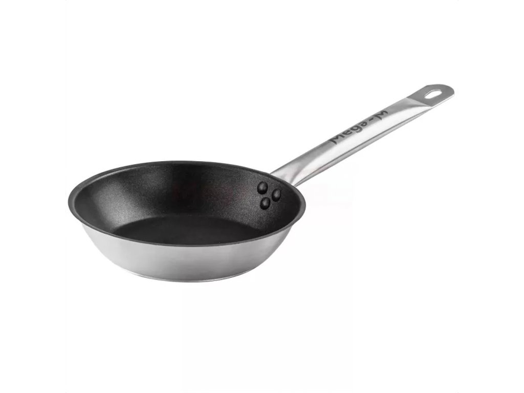 Nepřilnavá pánev z nerezové oceli o průměru 20 cm s vícevrstvým sendvičovým dnem (nerezová ocel-hliník-nerezová ocel) o tloušťce 6 mm. Pánev má ergonomickou rukojeť s vysokou tepelnou odolností, vyrobenou z materiálu, který minimalizuje riziko připálení při smažení potravin. Pánev lze používat na všech typech sporáků: elektrických, plynových, sklokeramických i indukčních. Ideální pro smažení všech druhů potravin .Osvědčí se v jakémkoli typu kuchyně ve stravovacím zařízení, restauraci, vzdělávacím nebo sociálním zařízení.