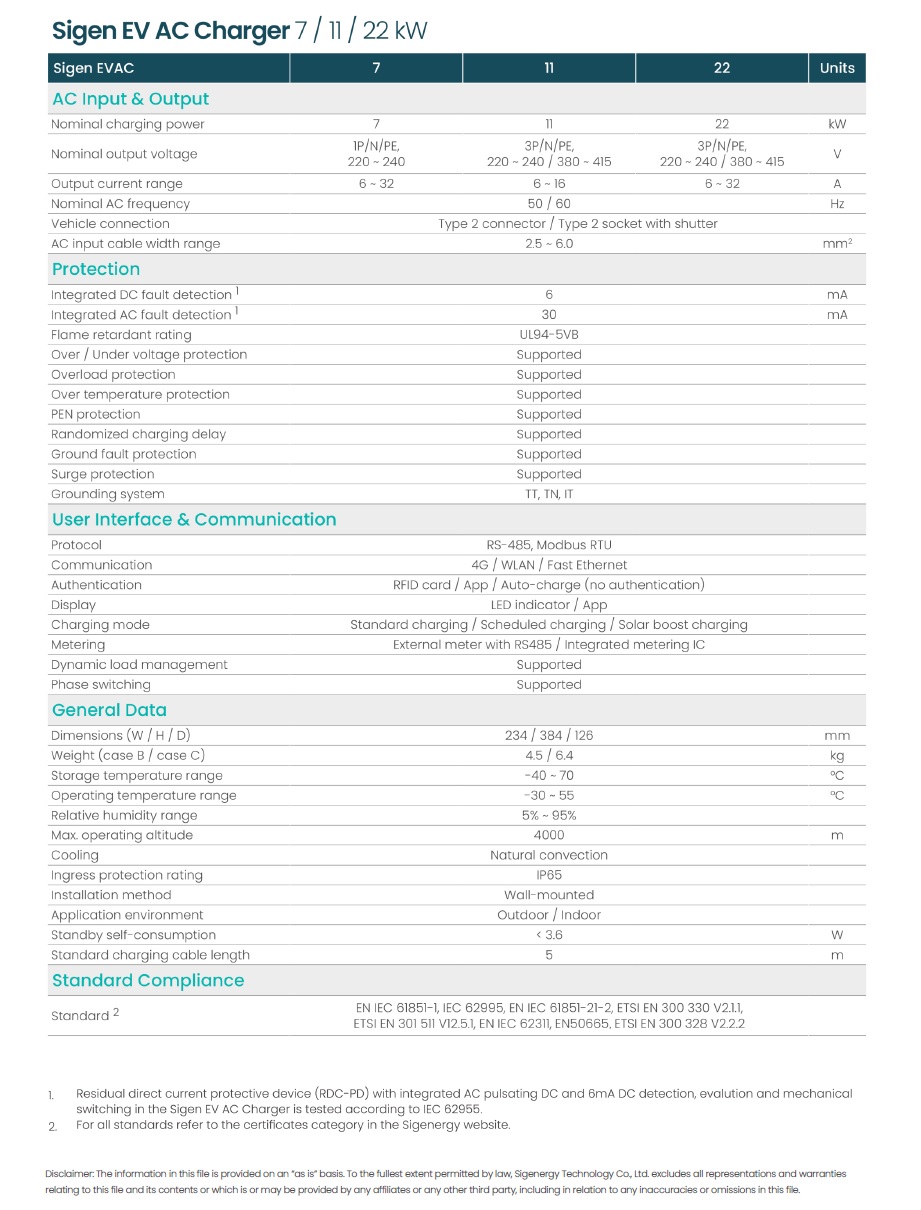 Sigenergy EV AC Charger nabíječka se zásuvkou/kabelem Typ 2 7/11/22 kW