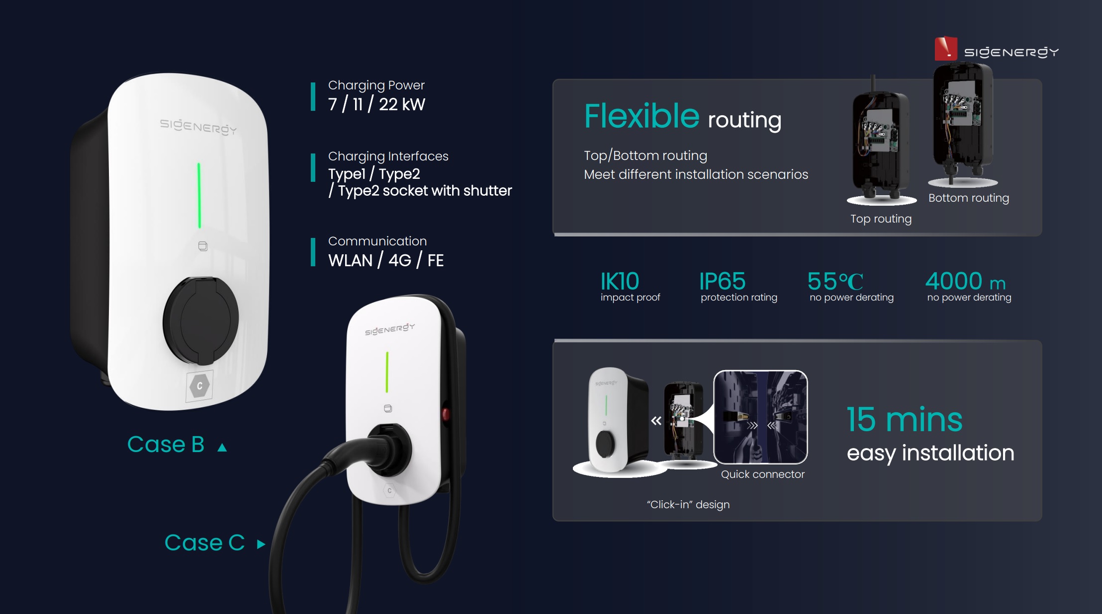Nabíječka Sigen EVAC dynamicky upravuje nabíjecí výkon na základě elektrické energie v domácnosti a plynule přepíná mezi třífázovým a jednofázovým režimem, aby zajistila jistotu a zabránila přetížení.