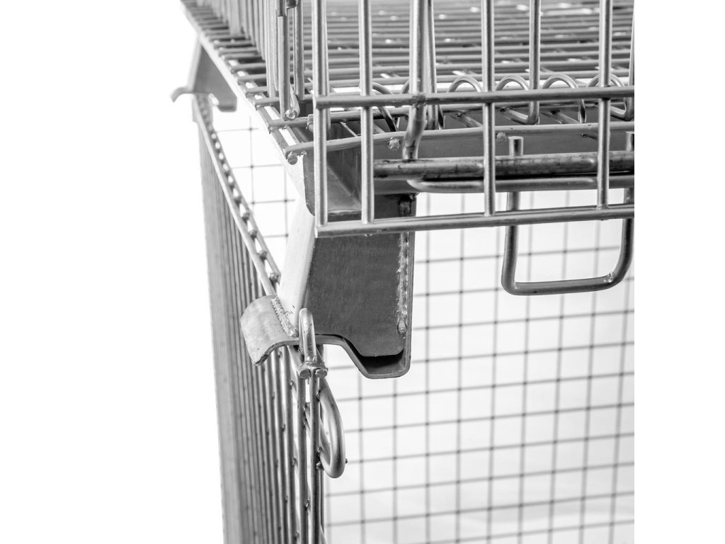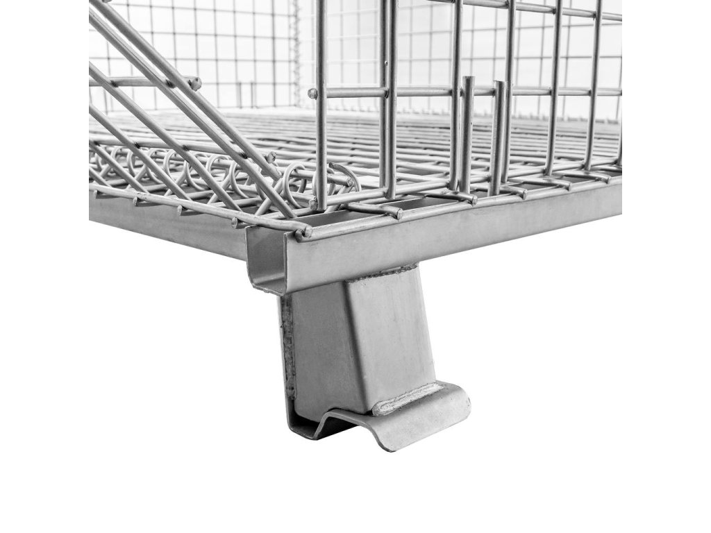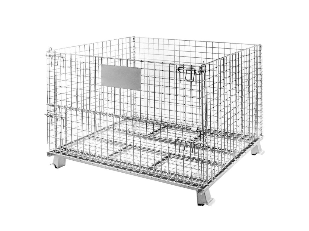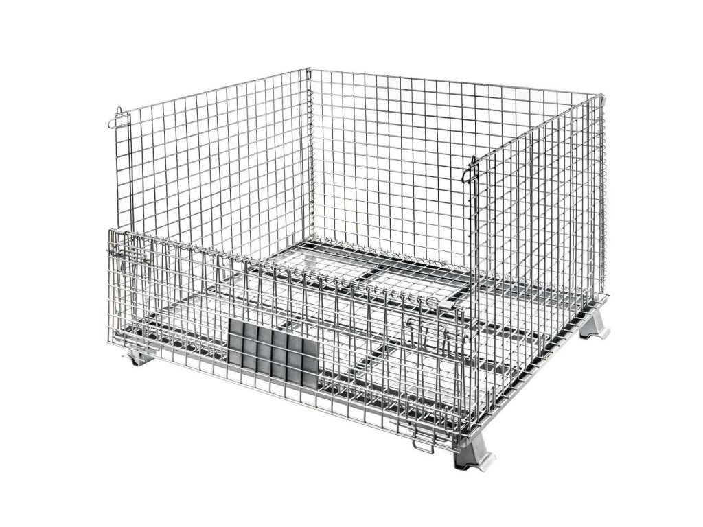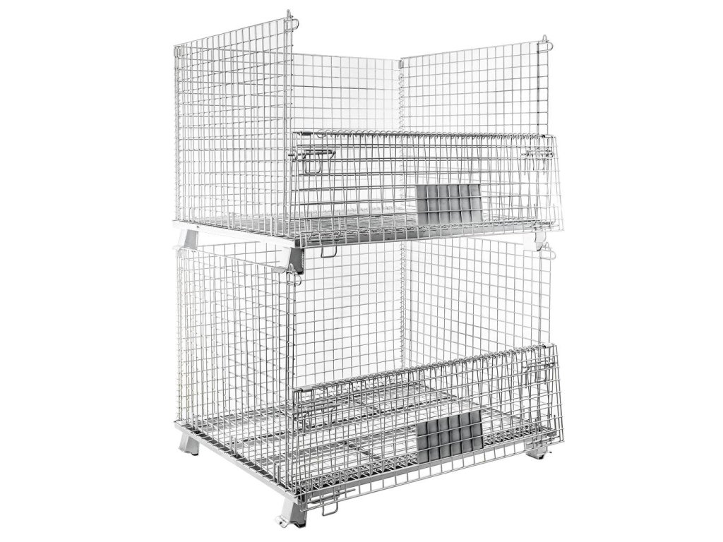 Skládacísíťový kontejner 120x100x89 cm je vyroben z pozinkovaného ocelového pletiva, které poskytuje větší pevnost a nosnost až 800 kg. Nosič se osvědčí v mnoha různých odvětvích pro přepravu a skladování zboží v halách, skladech, chladírnách a zemědělských podnicích. Pomocí skladovacích košů můžeme rychle sestavit robustní koš na menší zboží. Nádoba z pletiva na straně dlouhé 120 cm má výklopné víko, které usnadňuje vkládání a vyjímání zboží. Další výhodou je, že ji lze stohovat až po 4 na jednom sloupku, což umožňuje využít celý úložný prostor.