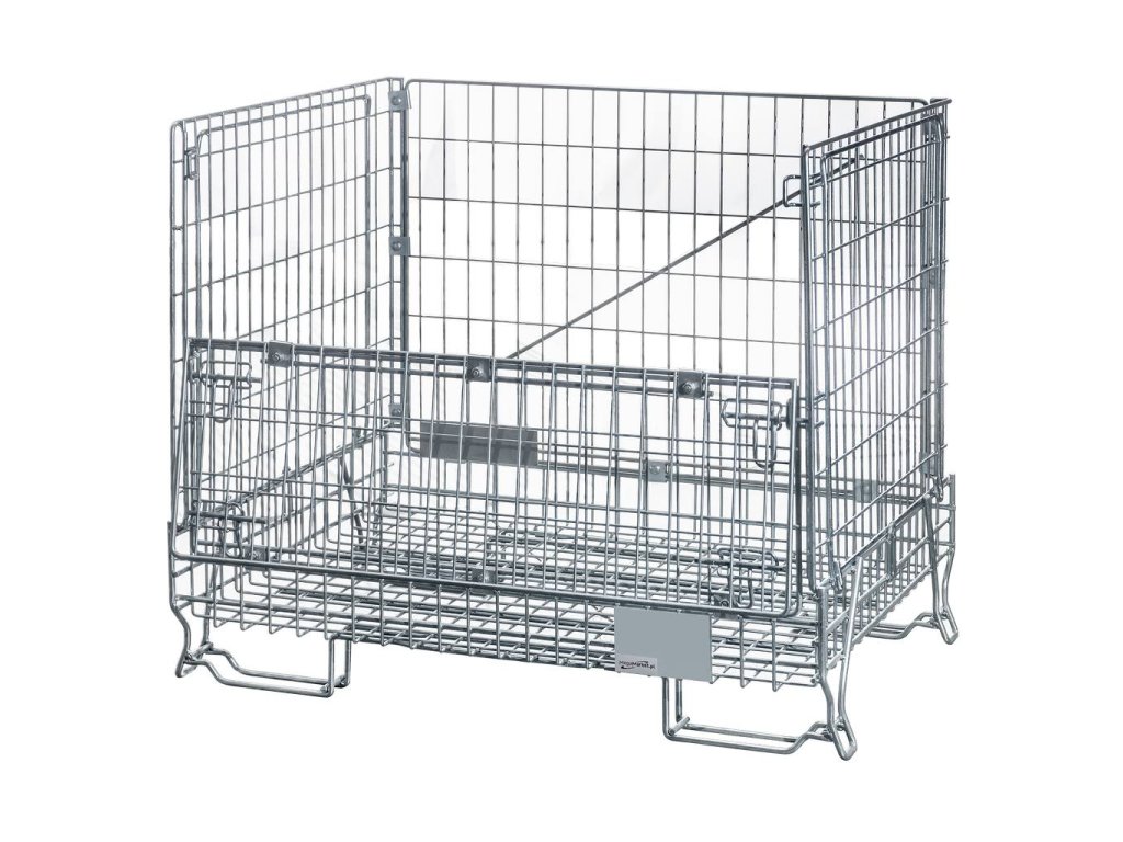 Skládacíkoš na odpadky je vyroben z ocelového pletiva, které je odolné proti mechanickému poškození. Je chráněn galvanickou vrstvou, která chrání kov před korozí. Nosič košů má na delší straně výklopné okénko , které zaručuje pohodlný přístup k vkládanému a vyjímanému zboží. Skladovací nosič slouží k přepravě a skladování zboží. Používá se také k přepravě a vystavování lahví vína. Pevný a robustní skládací box pojme až 400 lahví vína Bordeaux o objemu 750 ml. Maximální nosnost kovového koše je až 800 kg.