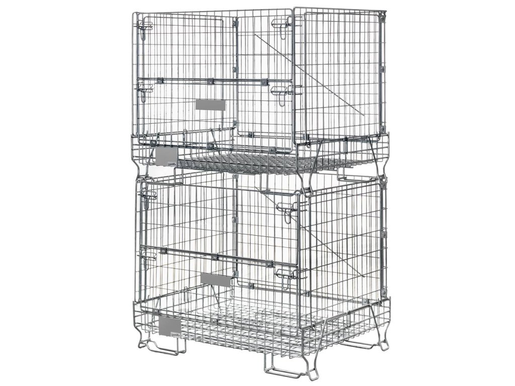 Skládací drátěné koše jsou univerzálně použitelné pro skladování, přepravu a vystavování zboží. Jsou chráněny pozinkovaným povrchem a lze je používat jak v uzavřených skladech, tak i ve venkovním prostředí. Pomocí skladovacích nosičů lze snadno zefektivnit práci, optimalizovat logistické procesy a zvýšit efektivitu využití dostupného prostoru. Kovové košové přepravky jsou vhodné pro výrobní závody, sklady, velkoobchody, dílny, obchody a vinotéky.
