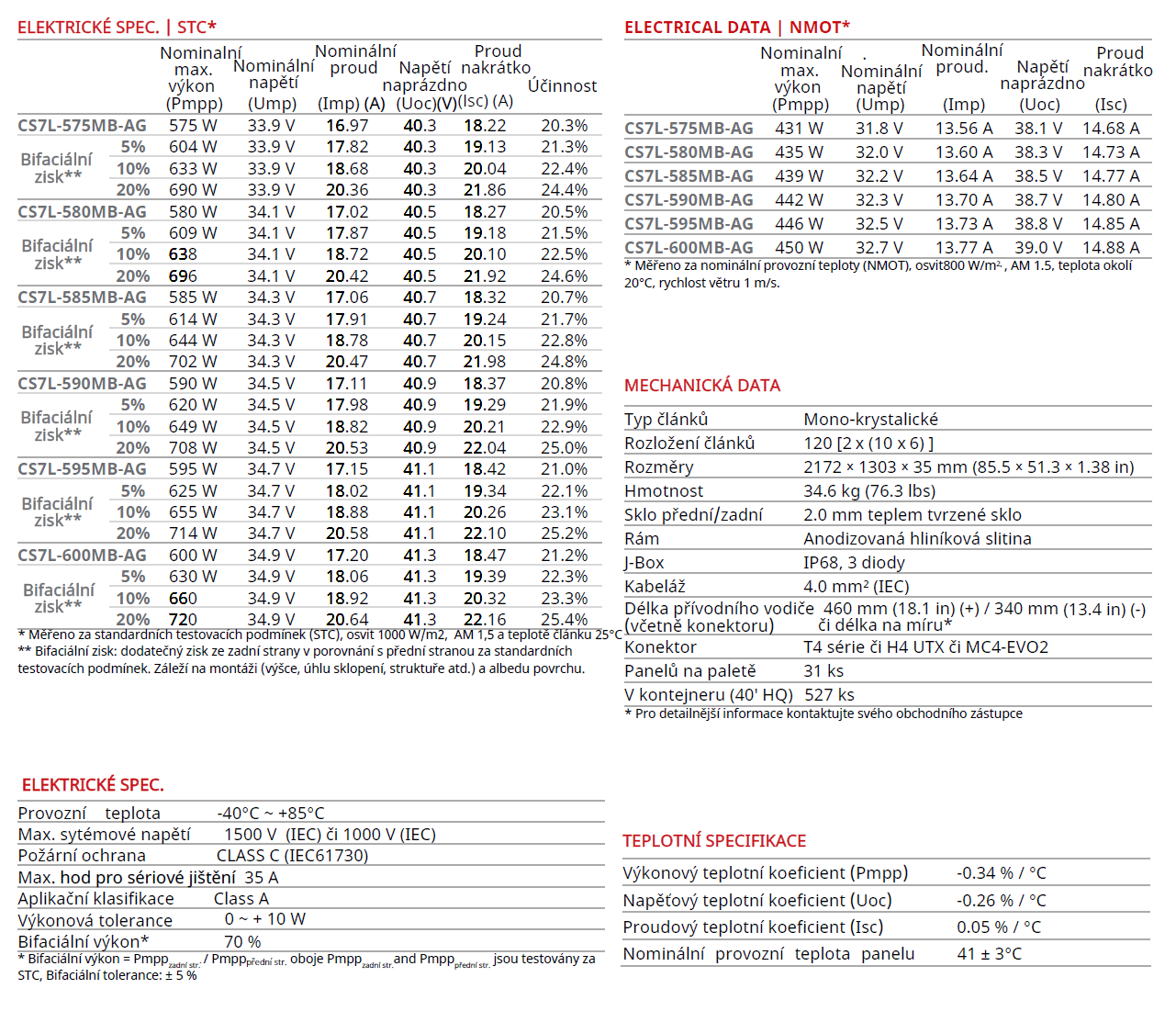 Biafaciální řada CS7L-MB-AG využívá technologie PERC a dual cell. Díky použití nejnovějších technologií, bifacialitě a vysoké účinnosti panelů je dosaženo vyššího zisku energie, je tedy potřeba méně panelů a náklady na pořízení systému jsou nižší. Díky bifacialitě generují až o 25 % energie více. Je na ně poskytována záruka 30 let. Panely jsou vhodné jak pro residenční instalace tak pro větší instalace na polích nebo střeše průmyslových budov kde je možnost využití bifaciláního provedení.