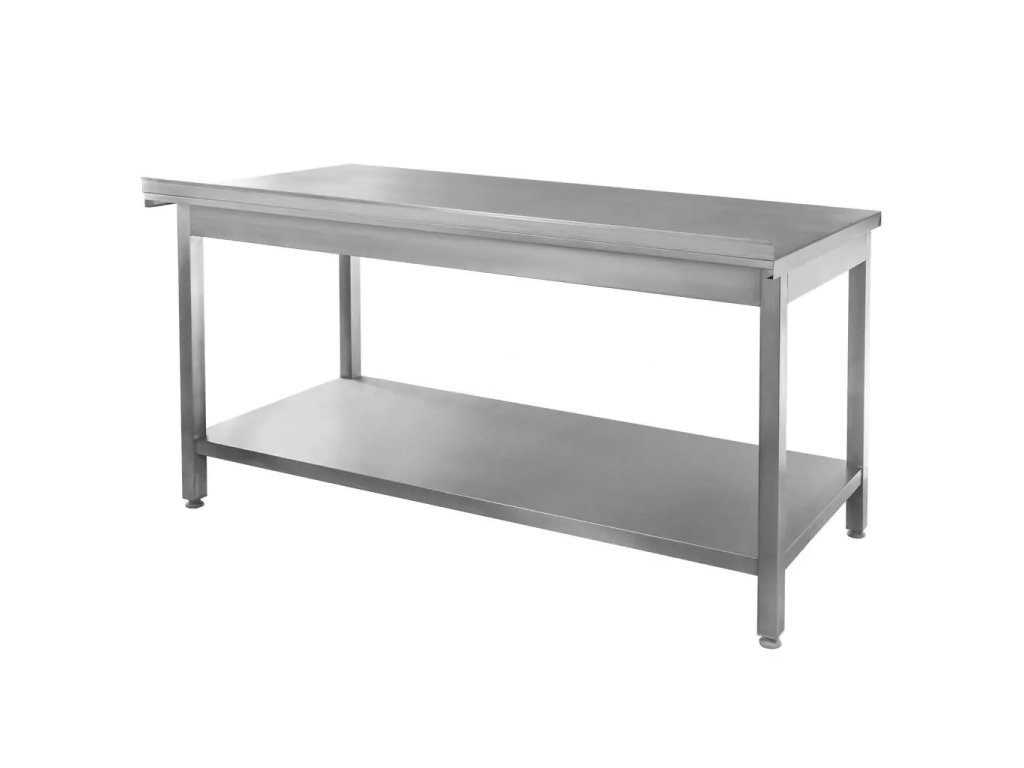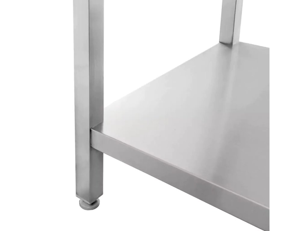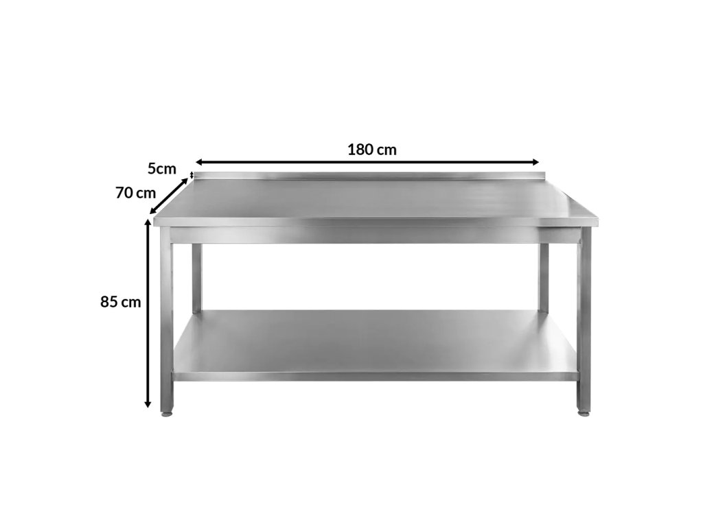 Dvoupatrový pracovní stůl se zesílenou konstrukcí – hygienické a funkční řešení pro gastro provozyTento gastronomický pracovní stůl je navržen pro maximální odolnost, efektivitu a hygienu v provozech s vysokou zátěží. Je vyroben z kvalitní nerezové oceli a doplněn o praktický okraj, který zabraňuje pronikání nečistot mezi stěnu a stůl. Součástí konstrukce je spodní police, která poskytuje další úložný prostor a přispívá ke komfortu při práci. Výrobek je dodáván smontovaný.