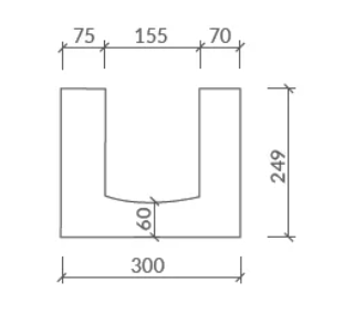 Schéma U profilu T2,5/400 300x249x599 mm